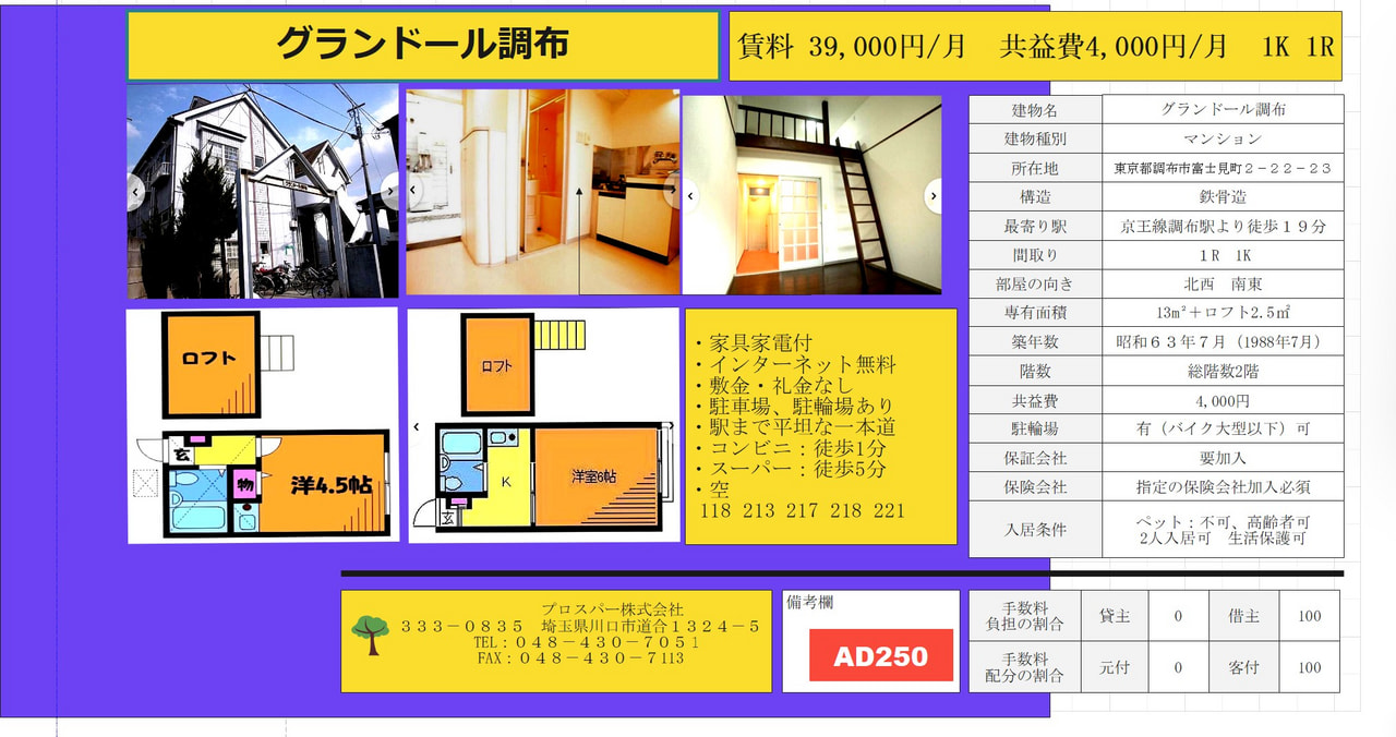 グランドール調布 1R 1K ロフト付